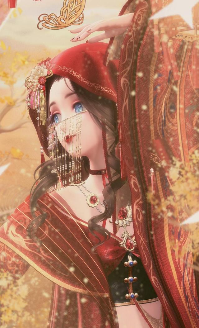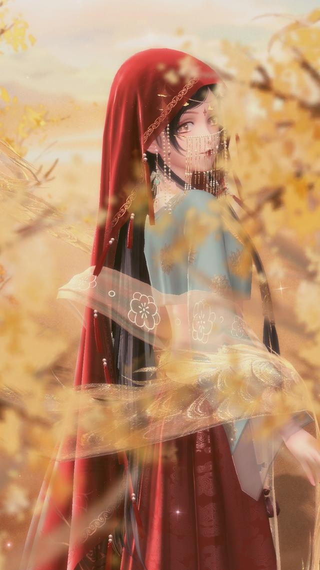“赤霞鸾歌”这套时装设计非常重度,所以有时候只留头巾也能搭配出非常好看的装扮,“原野之秋”背景与“赤霞鸾歌”的头巾也是个完美的配搭组合。