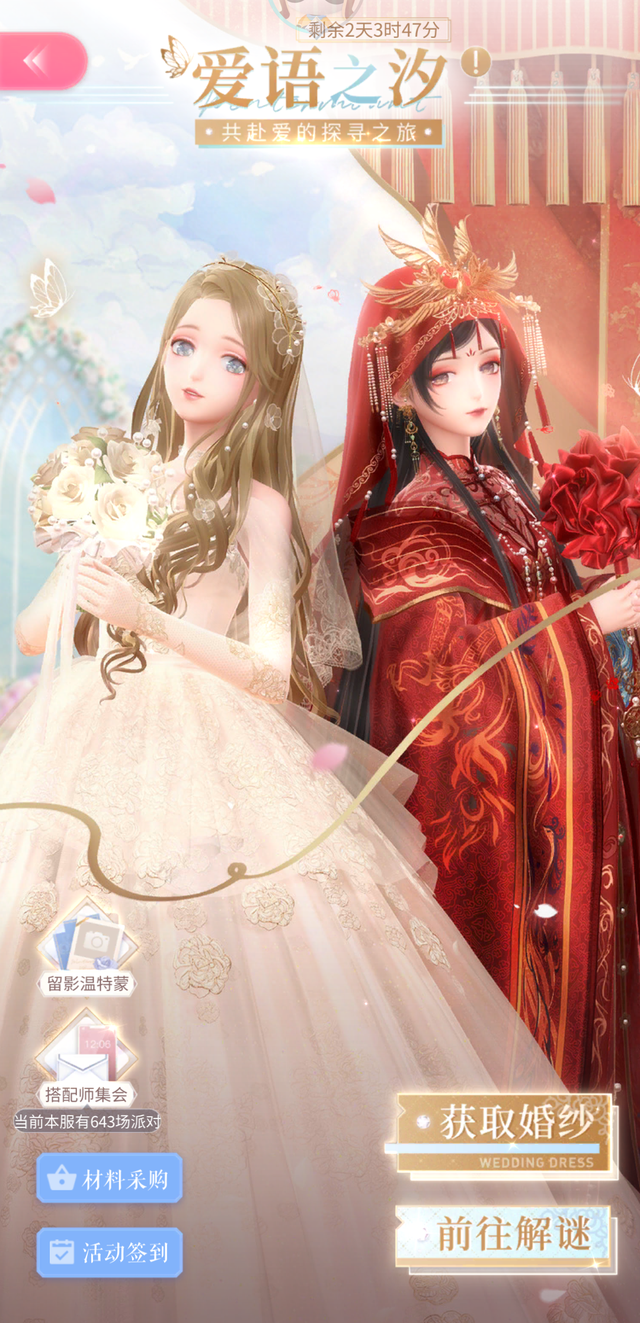 如果使用“赤霞鸾歌”时装配“原野之秋”背景会有不一样的感觉,当喜庆的嫁衣放在沙漠荒原之中会有一种奇妙的感觉,而重要的是这样的配搭还不觉得不协调哦!