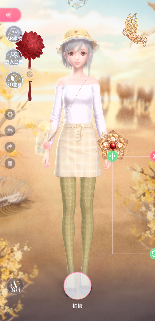 如果你会使用场景提供的DIY元素,你将会整出更多更有意思的效果,比如把黄色的枝条放大,并放在屏幕边缘,这样就可以装饰出一种沙漠荒原的沧桑感,然而装饰大小位置的不同会让你每次的配搭感觉都不一样哦!