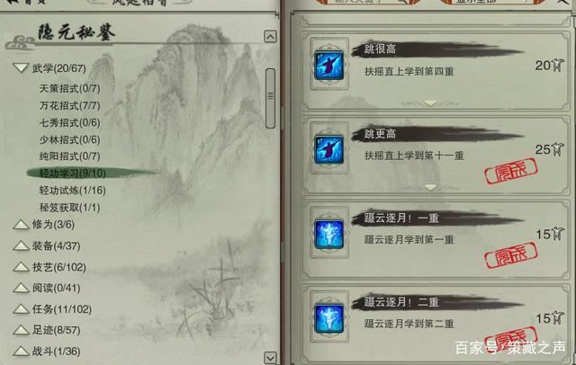缘起中的小轻功也与老版本不同,老版本中扶摇蹑云需要我们找到NPC才能升到满级,没满级的扶摇蹑云。