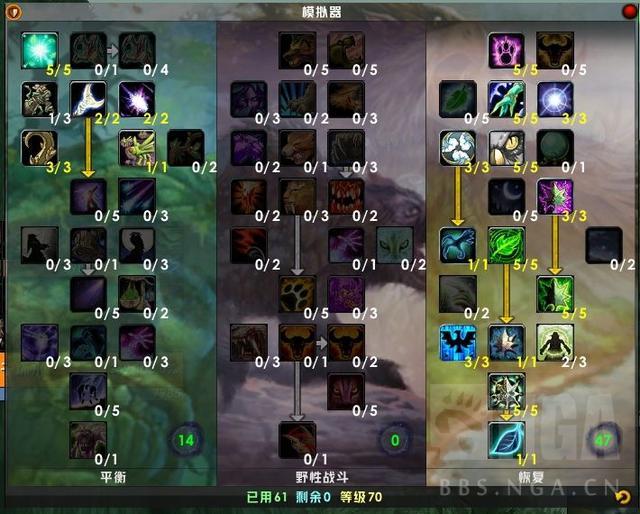 7-3天然完美可自己选择到其他天赋上。治疗方面思路和上面没有太大变化,虫群天赋更多的是在前期帮忙补命中上有不错的效果(但是变人真的很麻烦),3-1强化荆棘可以略微提高一点坦克仇恨,仅仅一点点锦上添花。