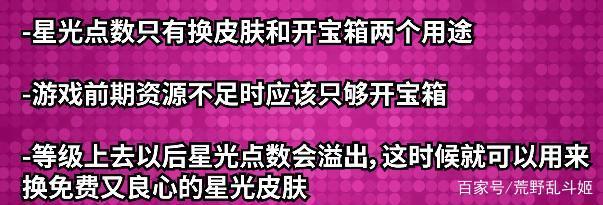 说到换东西,星光点的用处如图所示,前期换不到皮肤不要急,一个皮肤需要的星光点是很高的,换几个宝箱说不定妙具星辉英雄都到手了呢~