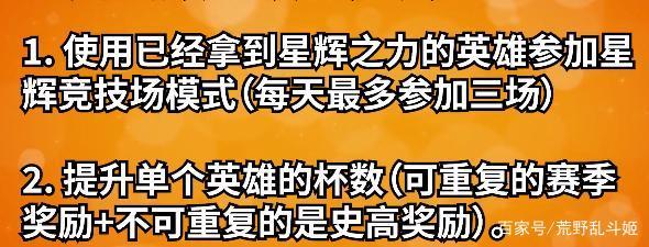 首先,必须用已经获得了星辉之力的英雄去参加星辉竞技场。不同的模式下,获得的积分也会有不同,这点是要注意的,再叮嘱一遍,一定要用带星辉的英雄进场啊,荒姐曾经刷了一下午,一点星光点都没有。