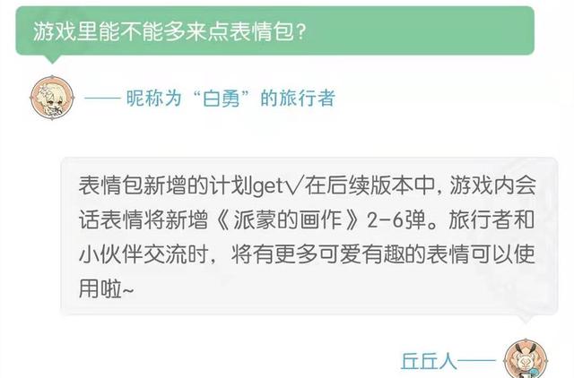 剩下的一个就是有旅行者反馈说现在原神里自带的表情包太少了没什么意思,这点下版本也会解决,在多填点新表情出来。这已经脱离了有用没用这个范畴了,这都不算什么功能的改动,说实在的,他要是不提我都快忘了这游戏里还有自带的表情包了。