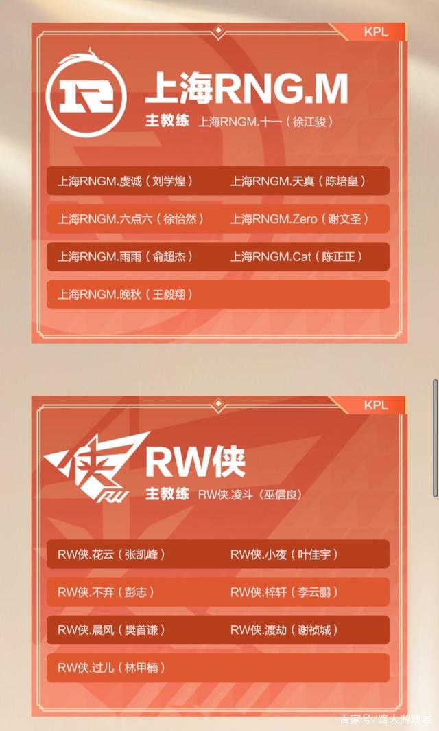 上海rng.m大名单射手虔诚,对抗路雨雨和6.6,打野晚秋,中单天真,辅助Zero和猫神cat,主教练依旧喜感十足的的十一教练。