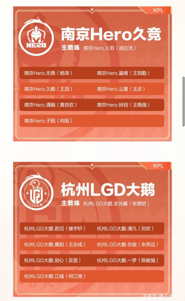 南京hero久竞大名单,首发五人组,赛训组尘夏进入大名单,新人铃铛,主教练联盟五冠王久哲。
