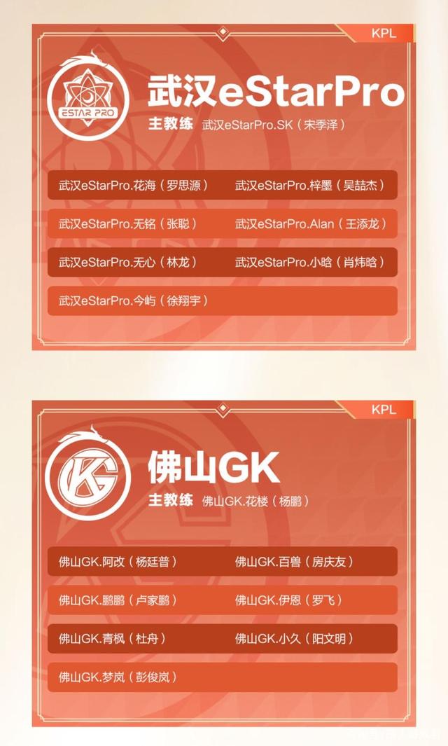 武汉eStarPro大名单,除首发五人组外,alan和小唅进入大名单,诺言并没有和传说一样进入大名单,估计以后也不会进入了,主教练依旧k宝SK。