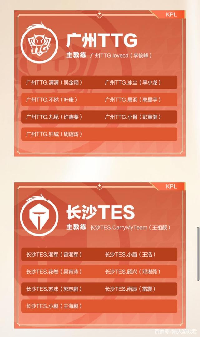 长沙TES大名单,首发五人组,打野替补巅峰赛大佬顾兴,新人替补雨辰,主教练依旧CarryMyTeam。