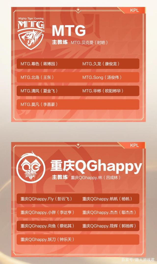 MTG大名单,首发五人组,替补Song和华郴,(应该是两个新人,没在次级和kpl中见过)主教练依旧贝克曼。