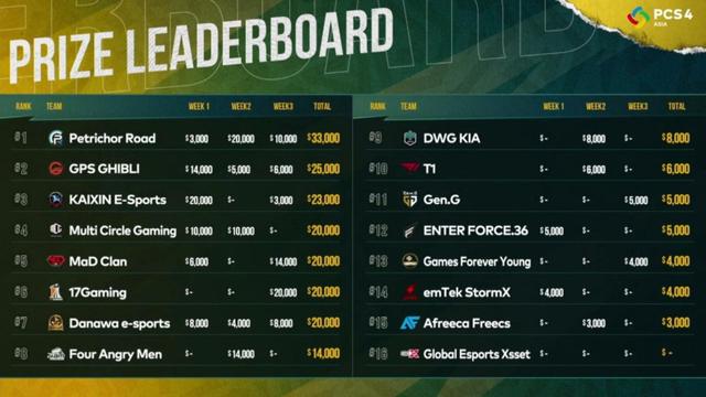 除了PeRo,KX也获得第三名,MCG获得第四名,17战队凭借最后一周精彩发挥拿到最后一周的冠军并且将自己排名杀入到第六名。
