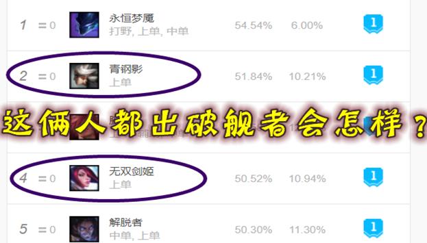 出破舰者性价比较高的英雄不外乎就是单带型的英雄了,上单战士之类的比较多,在这个版本像青钢影以及剑姬这一类的将会崛起。