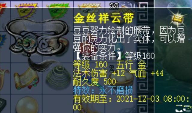 上面的这条腰带就是今年玩家在暑假活动中能够做出来的特殊装备,除了增加的气血之外,玩家可以选择增加法术伤害,固定伤害,还有伤害属性,但是对于法系的玩家来说,他们真的不太想要这个位置的装备,因为现在法系的玩家对于速度属性的要求也是比较高的,正常的情况下带的都是速度腰带,将速度腰带换成这种特殊腰带之后就会损失大量的速度属性,这样在任务中很可能会比较难混队。