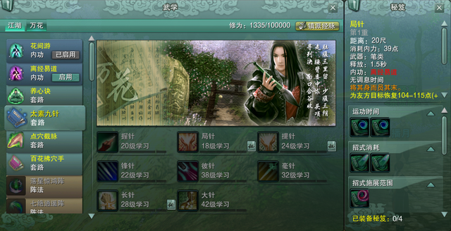 秘籍的获取有简单也有麻烦的,每个技能都是7选4,根据实际情况安排好就行。由于离经万花大多是打本或团队pvp时才会使用,治疗范围与治疗量就比较重要了。