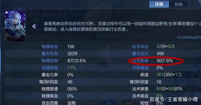 比方说下图:英雄拥有50点法术防御,可减免7.6%法术伤害,我们将50代入公式中可得50/(50+602)*100%≈7.6%,与描述的数据吻合。