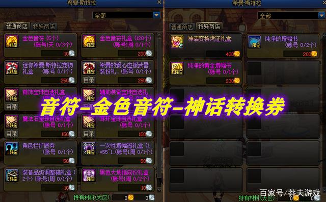 简单解释下“音乐奇旅”活动玩法,首先玩家通关刷图,可以获得【音符】,然后用音符在商店中兑换【金色音符】,而后金色音符可以用来兑换【神话转换券】!(刷图过程中也有概率直接获得金色音符,不过概率比较小)
