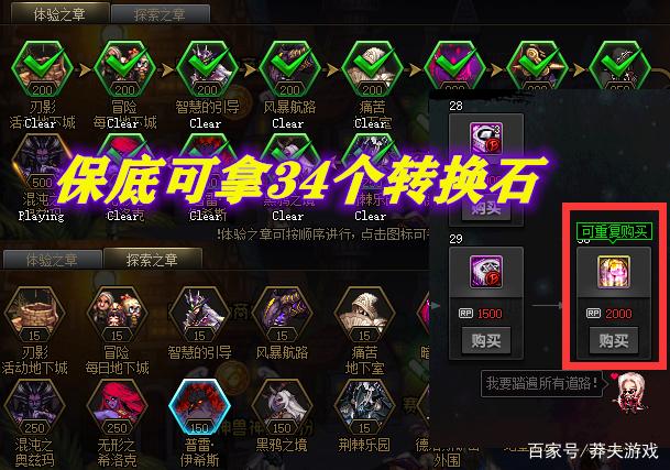 4、刃影“前行之路”,使用刷图点数兑换,保底可拿5个神话转换石。