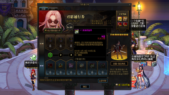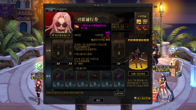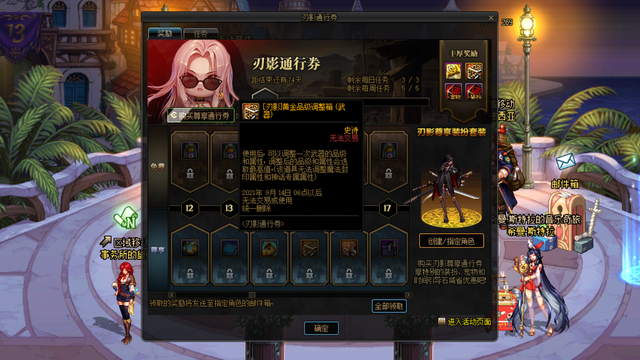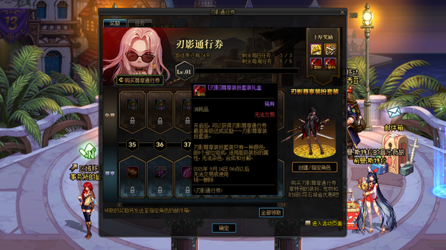 和普通战令一样,刃影通行证也开放免费和付费2种模式的道具奖励,一共设置40级等级,免费道具全部是30点的疲劳药,没一点亮点,所有主要是付费道具奖励。