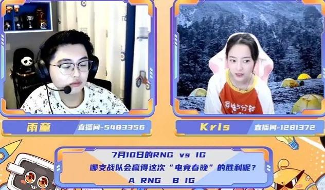 昨天的比赛打完之后,斗鱼组织一档节目中,一笔姐Cris连麦解说雨童,两位解说就谈到了IG和RNG这两支战队,并且预测了将于7月10日进行的《电竞春晚》,每一年IG和RNG的比赛都被大家称为春晚,这主要还是因为两支战队超高的人气,火爆程度和春晚有得一拼,所以这个称呼渐渐就传下来了。