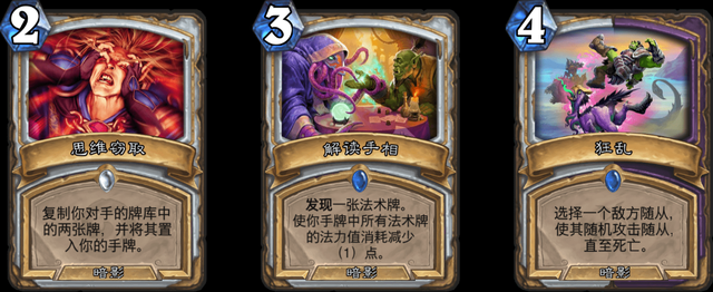 当然,其中有很大一部分暗影法术已经退环境了。标准环境可用的暗影法术都很好用,但主要是解场法术。所以,标准环境的暗牧大概率是以法术控场,随从蹭血配合技能斩杀的思路。