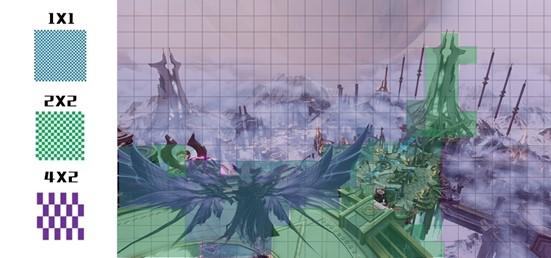 在渲染每一帧画面时,GPU会对每个像素执行一个着色程序以计算其颜色。一个典型的3A游戏中有360万个像素在显示器上进行着色。可变分辨率渲染允许开发人员指定着色器程序以2个或4个像素为一组仅运行一次,然后将这些颜色结果重复使用于周围像素的着色。