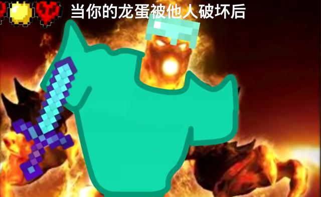在《我的世界》当中,什么事情会让你瞬间暴怒呢?同样是有关末影龙,前面开心,后面你可能会愤怒。在打败末影龙以后会获得龙蛋,龙蛋是十分稀有的道具。然而龙蛋并不容易保存,当我们辛辛苦苦打败末影龙后龙蛋却被毁掉了,这个时候玩家们可能会瞬间暴怒。这张图片便用着火来代替心情,你觉得真实吗?