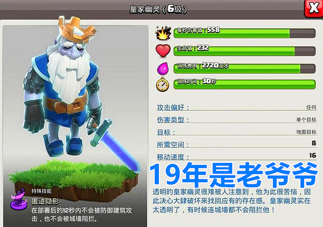 小白感觉如果的投票选出返场兵种的话“皇家幽灵”老爷爷一定会在这6位限时兵种的首位,因为这个兵种太强了,并且对低本玩家相当的友好,小白碰到的第一个“限时兵种”就是皇家幽灵,那真叫一个爽啊!满营的“老爷爷”只要出去就有收获,不管你是高本还是低本,皇家幽灵应该算是“限时兵种”中最强的兵种了吧!