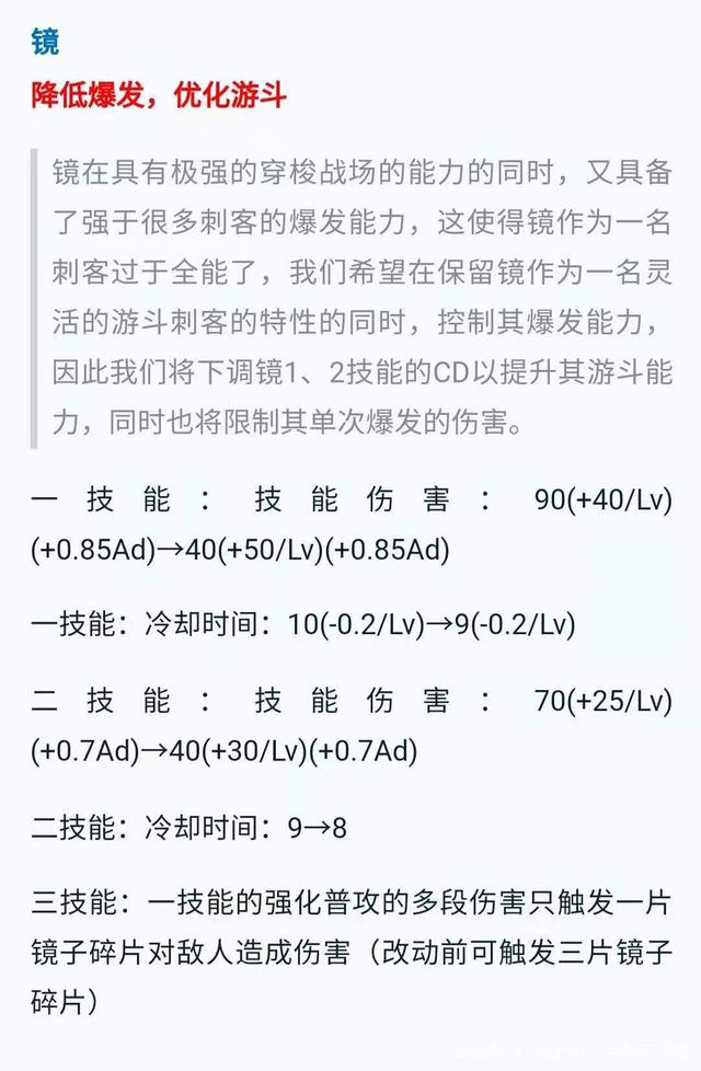 作为现在最热门的两个花里胡哨的打野之一,镜这次和澜一样,也中刀了。