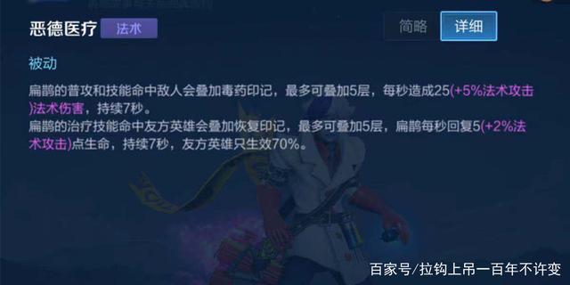 这是之前的扁鹊被动。可以看到,这个印记回复的数值,并不是很高。扁鹊的主要回复能力,还是集中在二技能和叠满被动的大招上面。