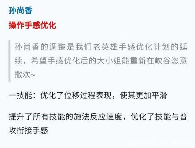 孙尚香优化了一技能位移的效果,以及所有技能的施法反应速度,简单来说就是优化了手感。