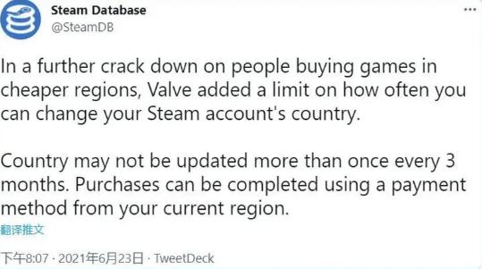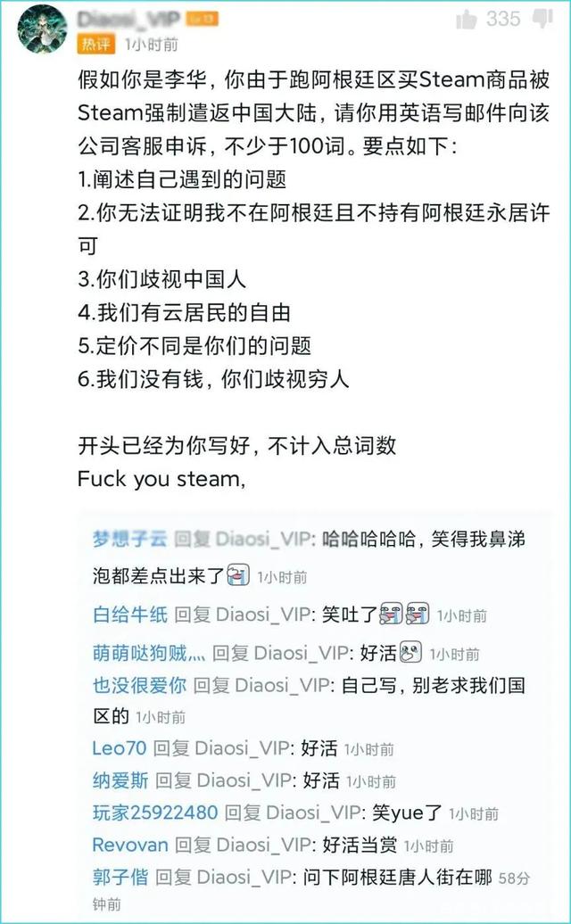 而这个消息的简单地来说便是Steam的地区更改有时限限制了,从原来随时都可以进行更改,转变成了三个月才能更改一次。而且在放出这个消息的同时,Steam还动用了技术手段,将长期在精神上久居阿根廷的玩家们强制“遣返”回国。