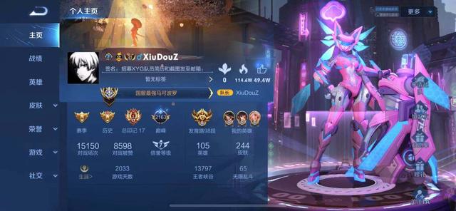 众所周知,XYG战队是有一队和二队之分的,二队因为之前的比赛而被张大仙宣布重组。所以,有不少国服玩家想要加入XYG战队,希望有朝一日能够进入一队比赛。在XYG止步世冠仅1天,就有一名15岁神秘玩家晒游戏主页,想要加入XYG。可以看出,该玩家拥有三个国服英雄,分贝是李白、曜和百里玄策。不仅如此,S24赛季巅峰赛成绩也是达到了2000+分,实力还算不俗。只不过,现在XYG战队的一队五人中,酷偕的边路也是值得肯定的,打野九月也是稳定carry。该国服玩家想要加入XYG的话,就只能去往二队,毕竟XYG二队已经在重建了啊。