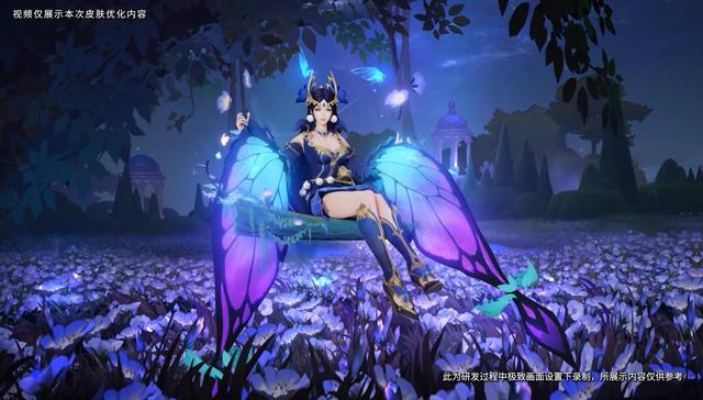 貂蝉-仲夏夜之梦优化后的技能特效还是不错的,在技能特效中加入了鸢尾花和蝴蝶的元素。普通攻击的特效就是一朵鸢尾花,一技能的特效则是一只蝴蝶,二技能的光球也变成了蝴蝶,位移后还会在原地留下一只“能量闪蝶”,三技能优化了花朵和花丛的设计,新版花园看起来更加立体和华丽了,貂蝉释放三技能的瞬间还会出现一只展翅的蝴蝶,整体看来还是非常不错的。