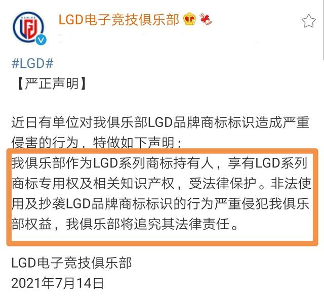 不过饭圈的这一系列迷之操作,终于是引起了电竞职业战队的注意,LGD战队官博正式发声,以维权声明的方式,要求电竞剧《你微笑时很美》停止侵权,要求停止抄袭使用战队logo图标,否则会追究这部剧的法律责任,这则官博可谓是大快人心,众多电竞粉丝表示终于有官方正式评价这部剧了。