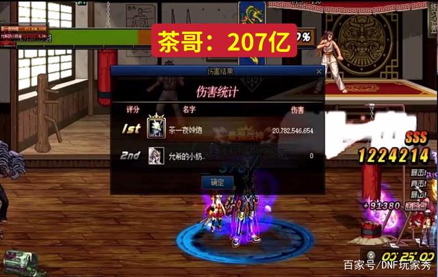 【2】由于有周年庆彩虹Buff,伤害不被认可,茶哥又进行了第二轮打桩测试,按照比赛要求测试,全新伤害出炉,207亿,茶哥的红19男大枪,成为了国服第一个伤害突破20万亿的角色,不仅是国服20秒伤害第一,也顺利拿下国服25秒伤害榜第一。