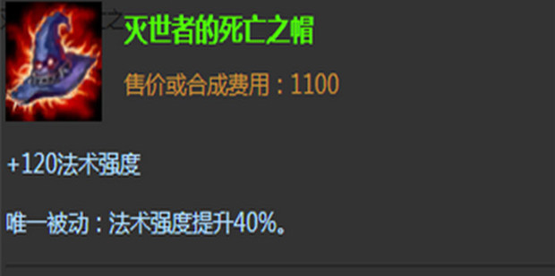 - 第三件装备选择灭世者的死亡之帽,这件装备可以给予龙龟大量的法强。