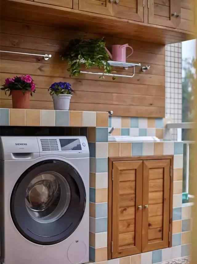 看,洗衣机藏起来的同时,还可以放几盆花~