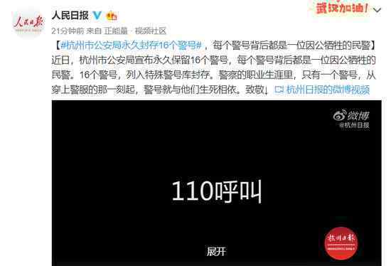 近日,杭州市公安局宣布将永久保留16个警号,每个警号后面都是一名因公殉职的警察。16个报警号,包含在专用报警号库中存储。在警察生涯中,只有一个警号。从他们穿上警服的那一刻起,报警就要靠他们生死了。致敬↓