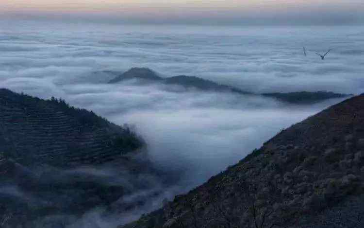 海面上有一点阴影的大龙湾村,在日落时被定格为最美的渔歌
