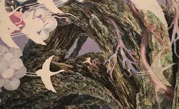 这幅画《新生活》描绘了一棵树和海啸之间的斗争。