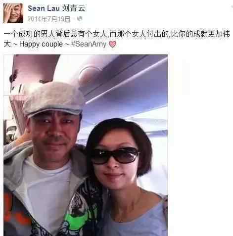 刘青云曾在脸书@郭蔼明上说:“成功的男人背后总有一个女人,而那个女人付出的比你的成就更多~”