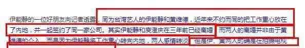 但我没想到的是,它打在我脸上的速度非常快。在狗仔队拍到伊能静和演员黄维德手拉手购物并一起进入公寓大楼后,伊能静和黄维德之间的恋情终于曝光了。很多知情人士也爆料说,伊能静和黄维德早在拍摄《满清后宫》时就相爱了,早在黄维德有女朋友的三年前就同居了。当时这个消息也在港台娱乐圈引起了轰动。庾澄庆选择与伊能静离婚。黄维德多次道歉,并与伊能静分手。当时,伊能静成了众矢之的,被骂得很惨。