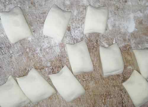 16.用小刀将面团切成小剂量的相似大小,并根据馒头的大小进行调整;
