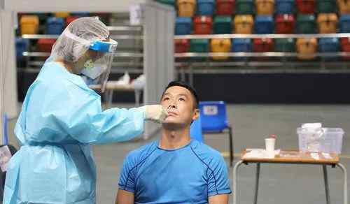 九月,在香港伊利沙伯体育馆的测试中心,工作人员为公众抽取样本。