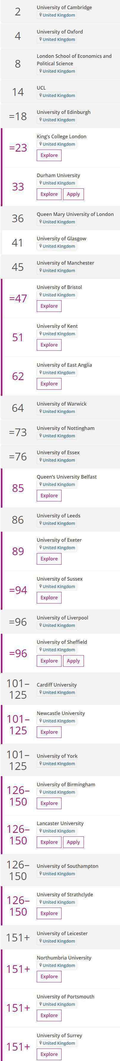 由于篇幅有限,今天我们只列出全球排名前200的英国大学,以后推送的时候会一一公布完整名单,可以继续关注。