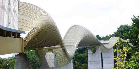 这座桥是一个工程奇迹,其独特的建筑结构吸引了全世界许多工程师的注意。莫比乌斯带风格的人行天桥架在龙王港河上,跨度为490英尺,高79英尺,这座桥在不同层次上有不同的路线。