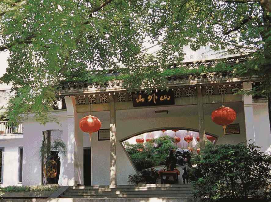 青山楼外,一句名句成就了杭州两大名店。山外山餐厅位于风景秀丽的西湖边的杭州植物园内,背靠青龙山,左边是山水园,左边是玉泉池。周围绿树成荫,鲜花盛开,是国内外著名的西湖餐厅。