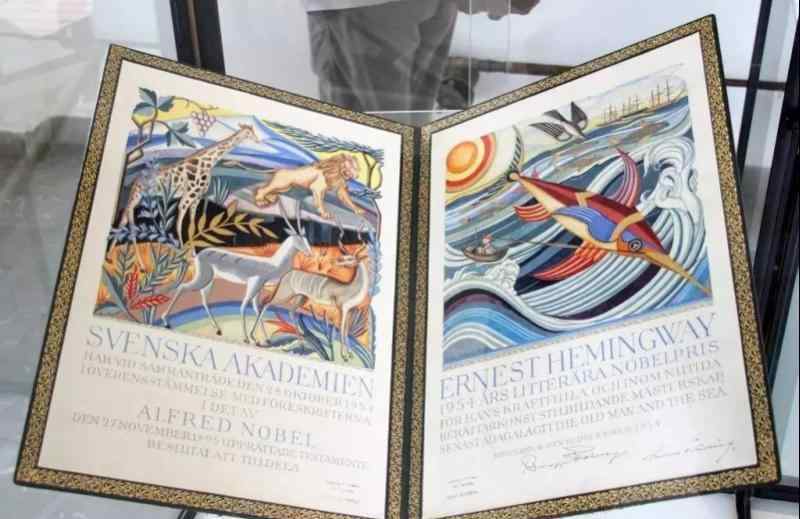 海明威的证书。老人和大海!