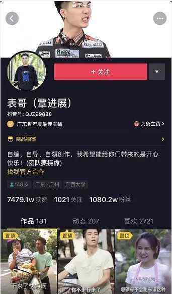 《表哥》11月吸粉437.8W,颤音粉丝总数1067W,被7305.2W好评。