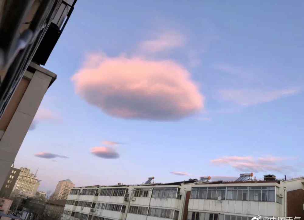 日空,出现飞碟状云,为透镜状云,又称飞碟云或碟状云,属于高积云,由上升气流和下降气流共同影响形成,往往中间厚,边缘薄,形状像豆荚。