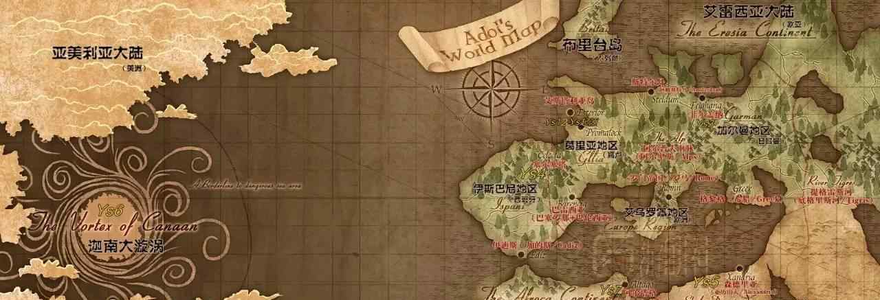 在伊苏的世界观中,世界分为三大洲:阿雷西亚、阿佛洛卡和阿米莉亚。只说中文翻译什么都看不到,但是写英文名一定要熟悉:埃勒西亚、阿弗洛卡、亚美利亚——分别是欧亚大陆、非洲、美洲的轻微改写。